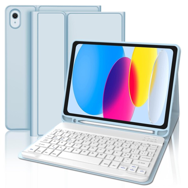 SENGBIRCH ipad A16 11世代/10世代 ケース キーボード付き 超軽量 薄型 iPad キーボード付きケース 第10世代/第11世代 Apple pencil収納 ワイヤレス Bluetoothキーボードカバー 着脱式 多角度調整 スタンド機能 オートスリープ 耐衝撃 全面保護 USB-C充電式 日本語説明書付き 10.9/11インチ対応 スカイーブルー