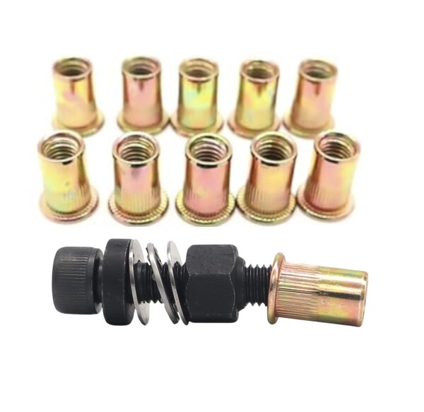 簡単な取り付けと高い耐久性:リベットナットは亜鉛メッキ炭素鋼製で、簡単にセットでき、取り付けが楽。炭素鋼製の本体は耐久性が高く、長期間使用可能。表面には防錆油が塗布されており、サビにも強い。