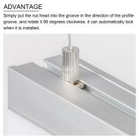[4]: 利点 - ナットヘッドをプロファイル溝の方向に溝に置き、時計回りに90度回転させるだけで、取り付けられたときに自動的にロックできます。