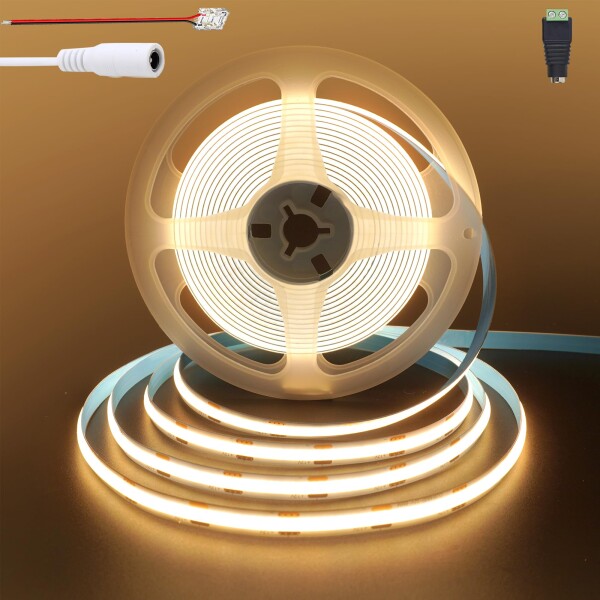 クリアヒル(Clearhill) 12V COB LEDストリップライト, 3M 温白色 3000K 480LEDs/m, 5521DCメスコネクターと赤黒