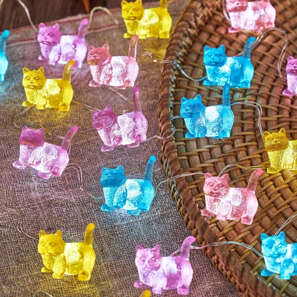 かわいい猫テーマのデコレーション 立体的なキティライトで、各ミニ猫フィギュアのサイズは1インチ×0.8インチ。吊るし飾りやバナーとしても可愛らしい装飾です。ストリングは細く曲げやすい銅線で、自由にディスプレイを楽しめます。