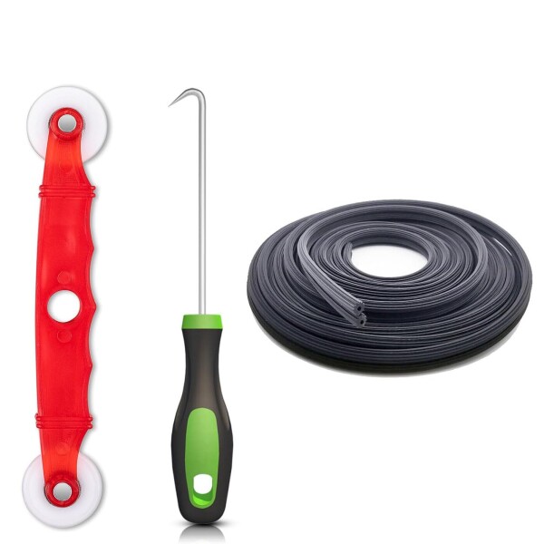 Phyxiul 網戸 張り替え用品 3点セッ 網戸取付工具 網戸交換用品 網押さえツインローラー 押えストリップしゅつりょくき 網押えゴム 網戸修理ツール 網戸用(4.5mm*10M)