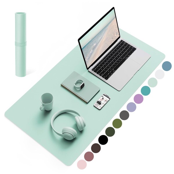 YSAGi デスクマット マウス対応 レザー デスクマット 大型マウスパッド 裏面はスエード 滑り止め 厚さ1.5mm 防水 防油 断熱 お手入れ簡単 オフィス 自宅用 装飾用 デスクパッド(水緑,80*40cm)