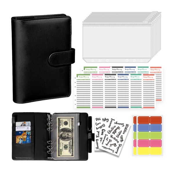 Doyime 予算バインダー A6 家計管理 お金管理 家計簿 袋分け 家計簿ファイル 袋分け 6穴 経費予算シート 書類 伝票 名刺 メモ紙入れ ルーズリーフバインダー 透明 大容量 システム手帳