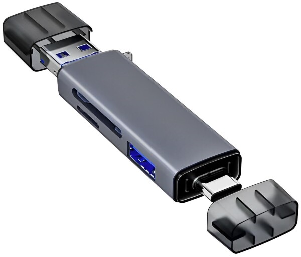 OTG マルチカードリーダー 変換アダプター USB TYPE-A TYPE-B TYPE-C TFカード 変換アダプタ ブラック Android 写真 保存 データ スマホ スマートフォン タブレット デスクトップPC ノートパソコン カメラ (USB3.0対応 6in1グレー, 1個)
