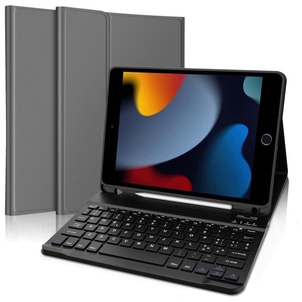 IVEOPPE iPad 第9世代 キーボード付きケース 第8世代 第7世代 10.2インチ 軽量 薄型 iPad Air3 ケースiPad Pro 10.5インチ キーボードカバー着脱式 マルチペアリング ペンホルダー付き 多角度調整 スタンド 磁気吸着 オートスリープ機能 ペン収納 耐衝撃 傷つけ防止 全面保護 Type-C充電式 日本語説明書 グレー