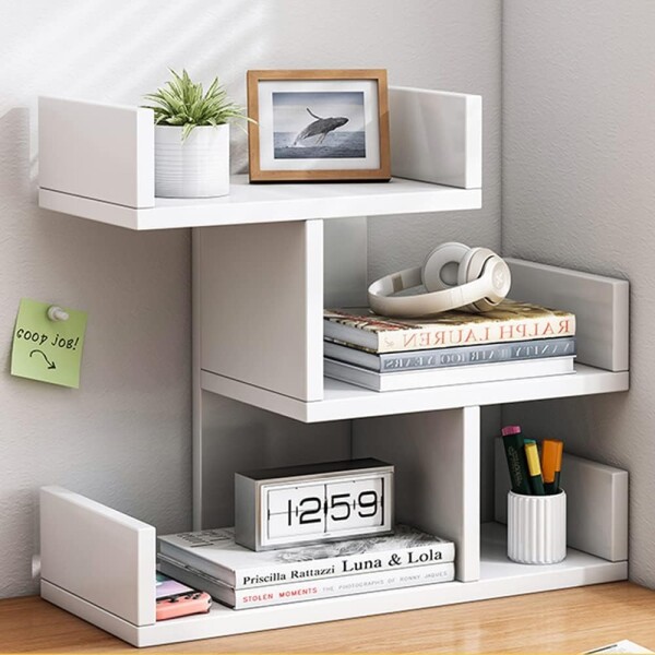 Ceritica 書架 卓上収納ラック 本棚 デスク上収納ラック 机上整理棚 幅40×奥行18×高さ40cm 木製 事務用品収納 小物棚 書類整理 文具用品収納 空間活用 多機能 キッチン収納 組み立て簡単 (ホワイト)
