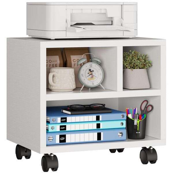 IBUYKE プリンター台 キャスター付き 木製 プリンターカート ワゴン PRINTER CART 3段 オフィス デスク下 卓上 収納 奥行き29幅39高さ30 ホワイト JPTPS004W