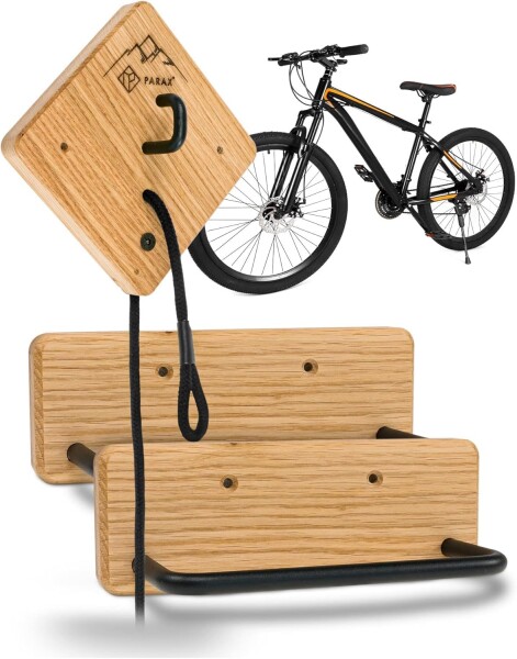 | 商品名 | PARAX バイクラック - 自転車用ウォールマウント - インドアバイク収納 - MTB、Eバイク、レディースバイク、ロードバイク、グラベルバイク用 - 最大35kg - 木製 - プレミアム |