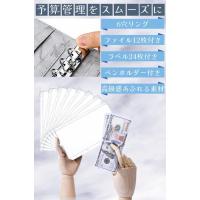 【大容量予算バインダー】手帳カバー(6穴リングルーズリーフバインダー)、ファスナー付きPVC素材のファイル12枚、ラベル24枚が含まれる。予算管理バインダー一式です。