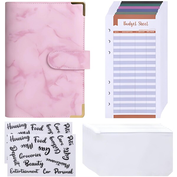 Mellbo 家計簿ファイル 貯金 お金管理 金銭 手帳 領収証 レシート ファスナー付き 予算記録シート シンプル マグネット開閉 ペンホルダー スマート 持ち運び PUレザー 18.8cm×13.5cm ピンク