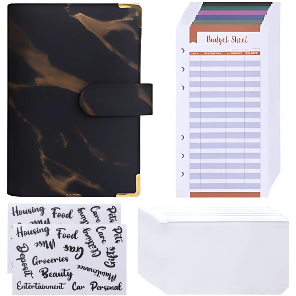 Mellbo 家計簿ファイル 貯金 お金管理 金銭 手帳 領収証 レシート ファスナー付き 予算記録シート シンプル マグネット開閉 ペンホルダー スマート 持ち運び PUレザー 18.8cm×13.5cm ブラック