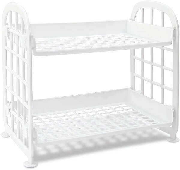 卓上ラック 2段 幅21.5×奥行14×高さ20.5cm ミニシェルフ デスク上置き棚 多機能 ミニラック 小物収納 卓上置棚 化粧品収納 組立簡単 整理整頓 スペース活用 収納ラック 文房具 事務用品 (ホワイト)