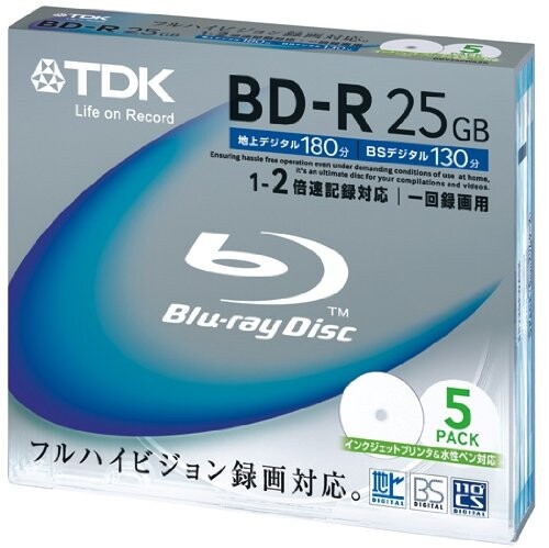 | 商品名 | TDK 録画用ブルーレイディスク BD-R 25GB 2倍速対応 ホワイトワイドプリンタブル 5枚パック BRV25PWA5K |