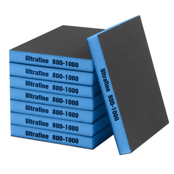 【スポンジヤスリ・Ultrafine(800〜1000) 】耐水ペーパー セット合計8枚、紙やすり側面に数字が印刷されており、数字が小さいほど粗目、大きいほど細目です