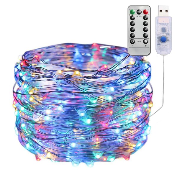 LEDストリングライト 柔らかい銅線ワイヤー・イルミネーションライト8種類の点灯モード 簡易DIY クリスマス/結婚式/パーティ/学園祭デコレーション クリスマス電飾/室内飾り (カラフル , 5メートル)
