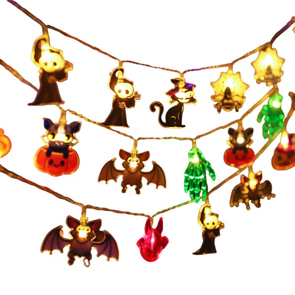 ハロウィンの雰囲気を一瞬で盛り上げるLEDストリングライト!本商品は全長5メートル、30球のLEDを搭載し、7種類または8種類のハロウィンキャラクターデザインからお選びいただけます。南瓜、幽霊、コウモリ、骸骨、魔女、黒猫、蜘蛛の巣、死神など、人気の要素が揃っており、飾るだけで華やかで不気味な空間に。高品質PVC素材を使用し軽量で耐久性があり、電池ボックス式なのでコンセント不要で屋内外どこでも簡単に設置できます。庭、玄関、リビング、店舗やイベント会場など幅広いシーンで活躍し、ハロウィンはもちろんクリスマスやお祭りにもぴったりなイルミネーションライトです。