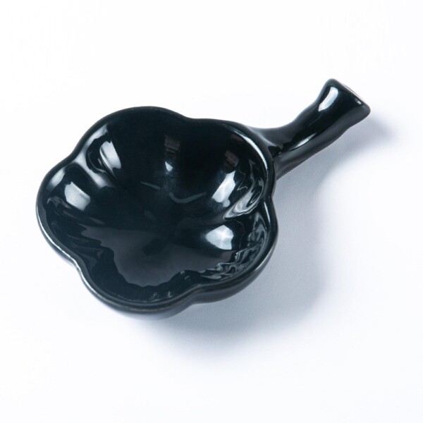 取っ手部分を筆置きとして使えます。艶のある美しい色合いと梅の花をモチーフにしたかわいいデザインとなっています。