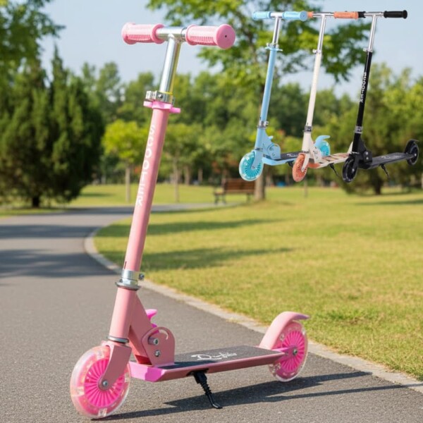 iimono117 キックスクーター 子供 キックボード 2輪 光る LEDタイヤ 3段階高さ調整 ブレーキ スタンド付き 耐荷重50kg 折りたたみ式 ハンドル高さ調節 滑り止め クリスマス 誕生日プレゼント (ピンク)