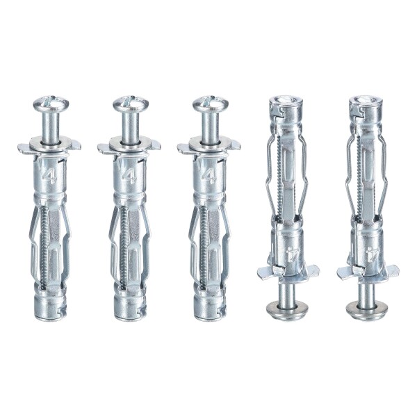 DTGN M4x38mm くうどう壁用アンカー - 5個入り - 石膏ボード壁に最適 - 炭素鋼製ドライ壁アンカーネジ シルバー色