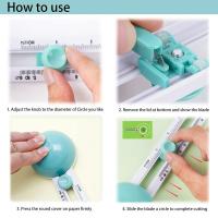 【使いやすい】数字が読みやすいクリアな目盛付き定規が付属しており、お子様が手工芸品を作るのも簡単です。 ネジを外してスライドさせてサイズを設定し、ノブを希望のサイズに対応する位置にロックします。 次に、カッターを紙の上に置いて回転させ