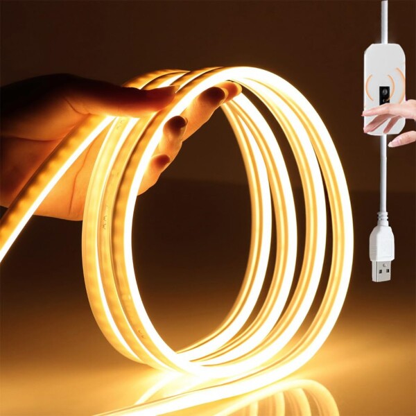 Honebear LEDテープライト, USBバーライト, 高輝度1M, 昼光色・電球色, 調光可能, キッチン・キャビネット用間接照明, 貼付け式室内照明 (1M 電球色, センサー型)