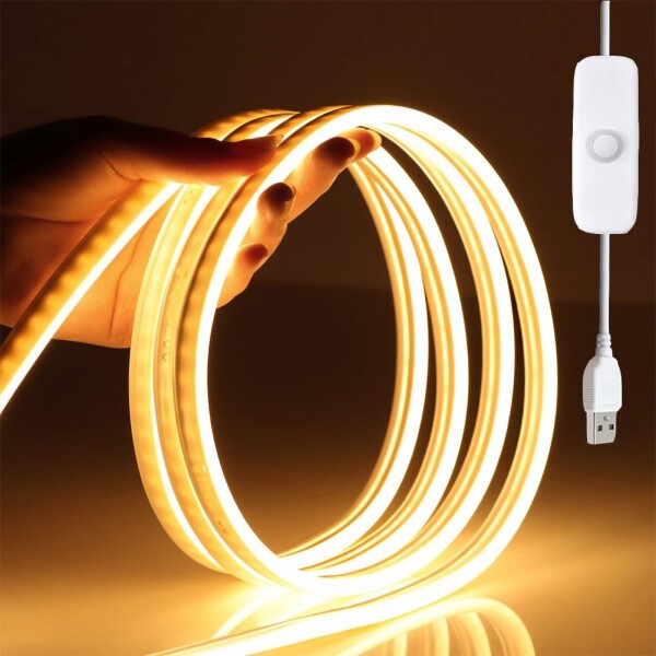 Honebear LEDテープライト, USBバーライト, 高輝度1M, 昼光色・電球色, 調光可能, キッチン・キャビネット用間接照明, 貼付け式室内照明 (2M 電球色, スイッチ型)