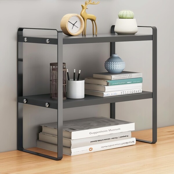 WoRefCra 卓上ラック 2段 デスクシェルフ 机上収納 卓上 棚 ミニラック デスク上収納ラック 省スペース オフィス/キッチン対応 組み立て簡単 ブラックフレーム+ブラック天板