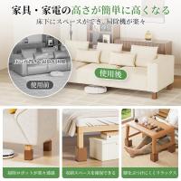【高さ調整脚】材質: 鉄 (本体) / フェルト (床接触部) / EVAエチレン酢酸ビニル共重合体 (家具接触部)。セット内容: 4個、適用サイズ: 直径または角辺80mm以内の脚。 おすすめ用途:・こたつ ・ダイニングテーブル ・ソファ ・ベッド ・冷蔵庫 ・洗濯機 ・本棚 ・TV台