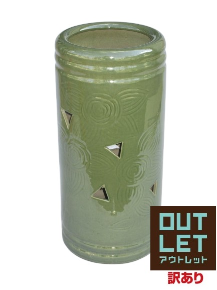 《アウトレット・訳あり品》陶器傘立て【グリーン・透かし】 陶器 傘 傘立て 折りたたみ傘 レイングッズ 雨 アンブレラ アンブレラスタンド 収納