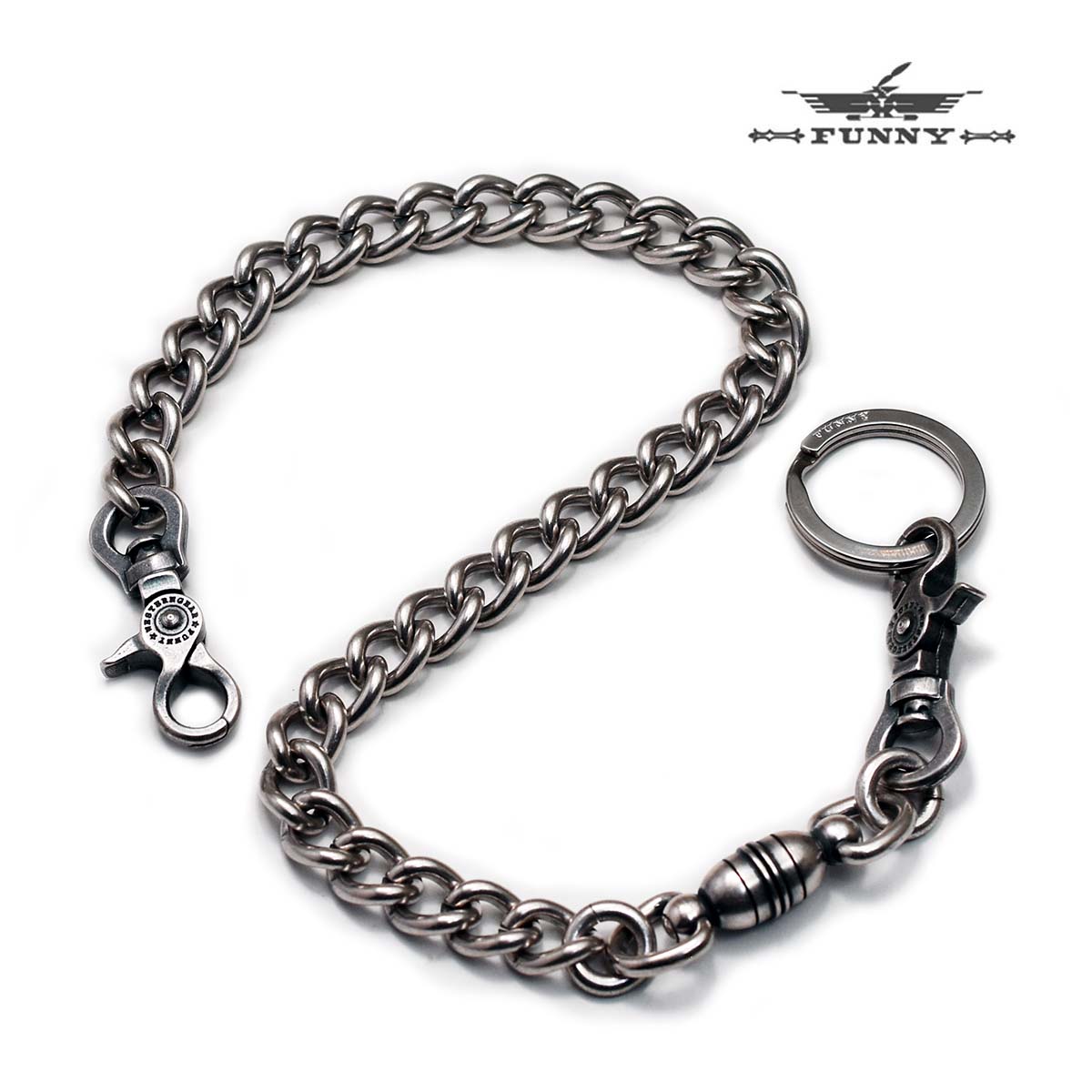 ウィンチェスター銃(ライフル)をイメージしたデザインのオリジナル・バレルスナップに、チェーン自体でねじれを解消することができるダブルドロップパーツなど、これまで改良に改良を重ね、こだわり抜いたパーツにより構成されたFUNNYならではのオリジナリティー溢れるメタルチェーンです。