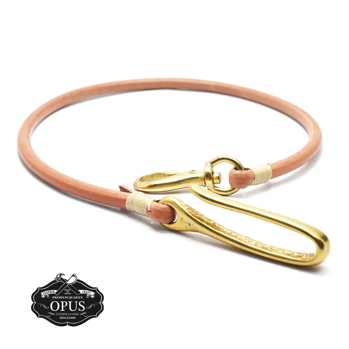 ■OPUS 1999年に誕生したブランドOPUS(オーパス)。 素材にこだわり、それらを最大限に生かすデザイン。 商品は永年使用を見据え、使う程に味が出るものばかりです。 「OPUS」とは”創作された音楽的作品”を意味します。 技を卓越した職人と洗練されたデザイナーとで共演し創作された商品は 音楽の様に美しい作品という意味を込めて命名したブランドです。 細やかな部分まで気を使った商品は、どれも国内の熟練された職人の技と時間を たっぷりとかけ作り上げられています。 6ミリのサドル丸紐に、真鍮のフックをつけました。
