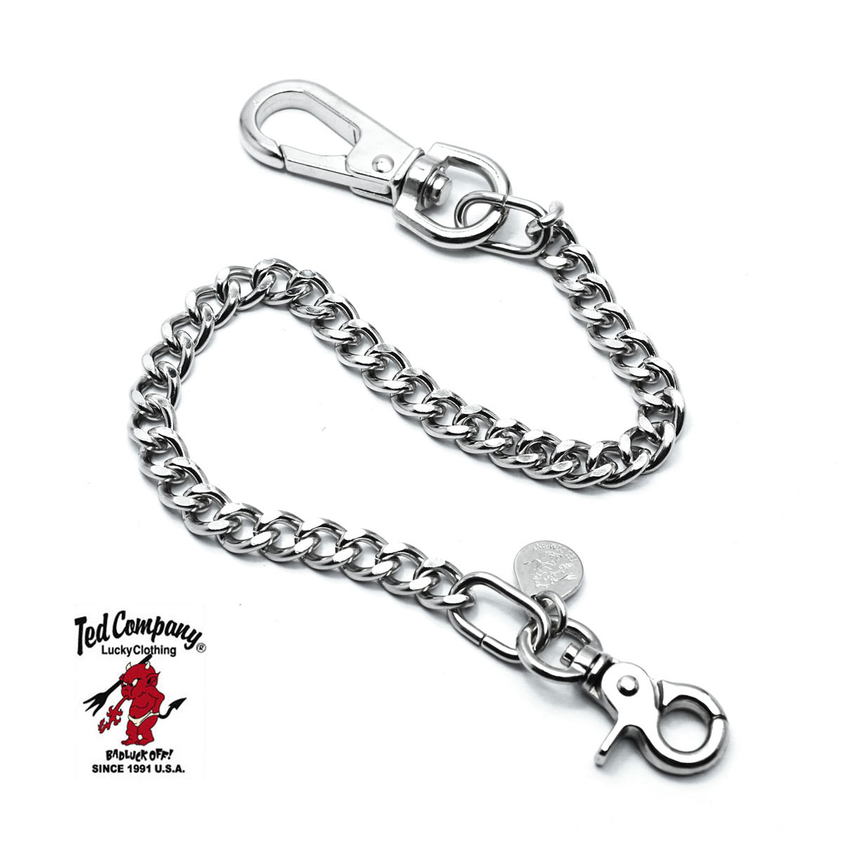 重厚なスチール製のウォレットチェーン。テッドマンエンボスプレート付き。