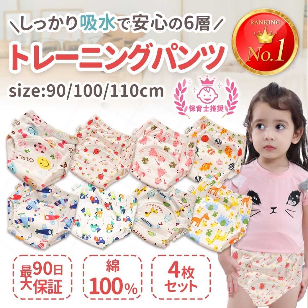 トレーニングパンツ 6層 トイトレ トレパン おねしょ キッズ 保育園 幼稚園 女の子 男の子 90 100 110 4枚セット 4枚組