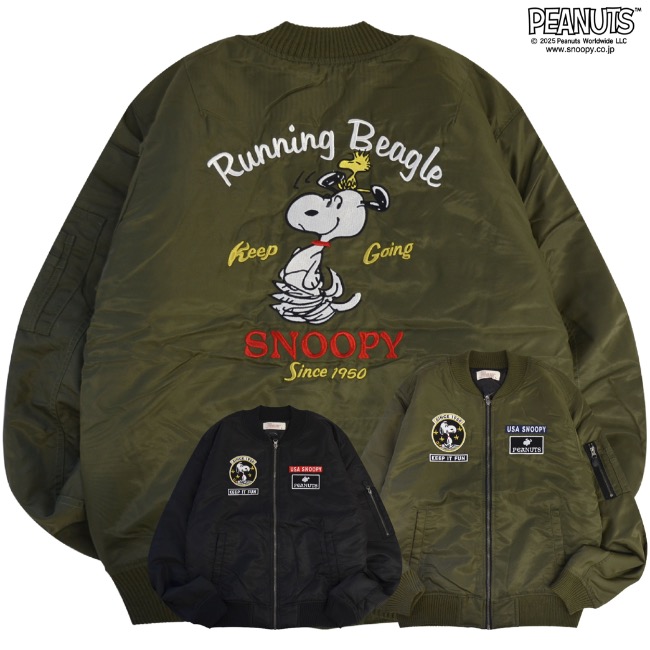 大人気キャラクターのスヌーピーのランニング柄MA-1です