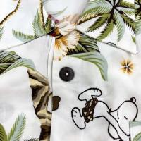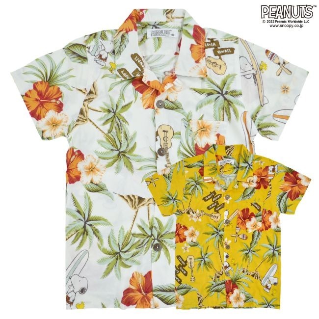 アロハシャツの中にスヌーピーのさりげなさが可愛い。 夏のリゾート、避暑へ親子セットでも着用可能な、ペア アロハシャツ。