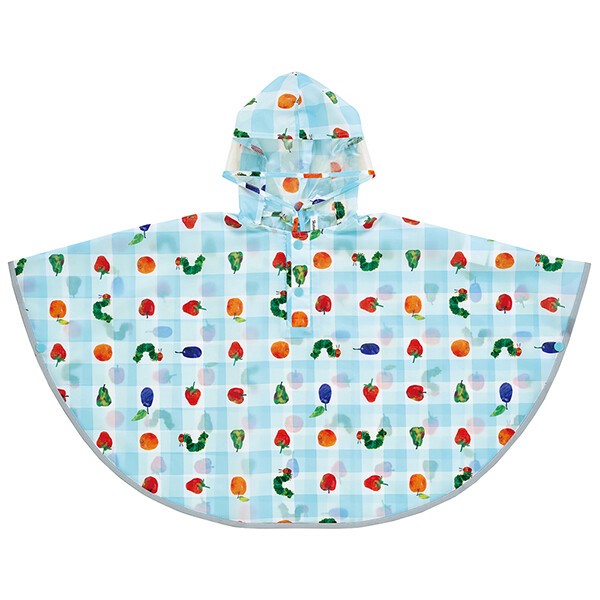 はらぺこあおむし キッズレインポンチョ 90cm 雨具 カッパ レインコート レインウェア 収納袋付き 子供 子ども キッズ ギンガムチェック キャ