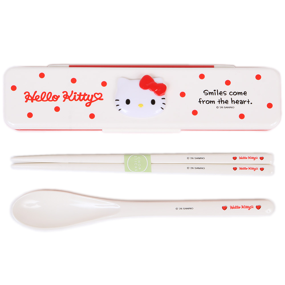 ハローキティ レリーフ付き箸&スプーンセット 音が鳴りにくいケース 携帯用カトラリー 日本製 かわいい おしゃれ レディース 女子 女の子 サンリオ