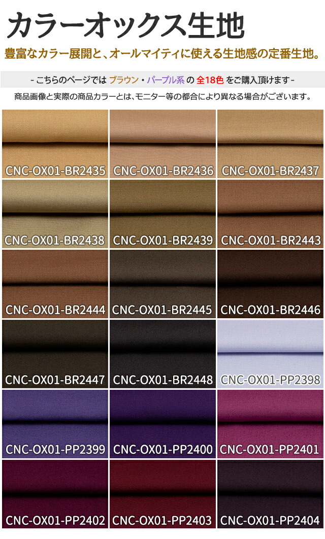 カラーオックス生地 全84色 茶 紫 布幅112cm 50cm以上10cm単位販売