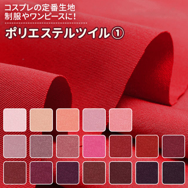 制服 コスプレに ポリエステルツイル 生地 無地 全132色 赤 ピンク系 19色 布幅150cm 50cm以上10cm単位販売