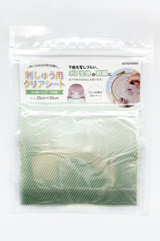 水に溶ける、のり無しタイプの刺しゅう用クリアシートです。