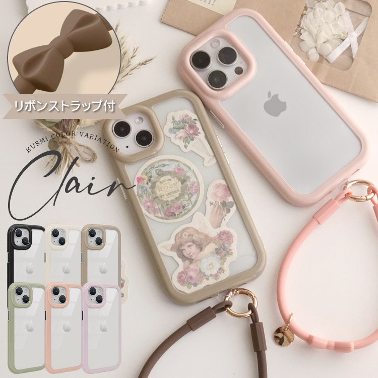 特徴 | ・やわらかな雰囲気とくすみカラーがかわいいケースの登場です。 ・同系色のリボンデザインのリストストラップのセットもお選びいただけます。 ・クリアな背面は自由にカスタマイズできます。 ・ワイヤレス充電も有線充電も可能です。 | |