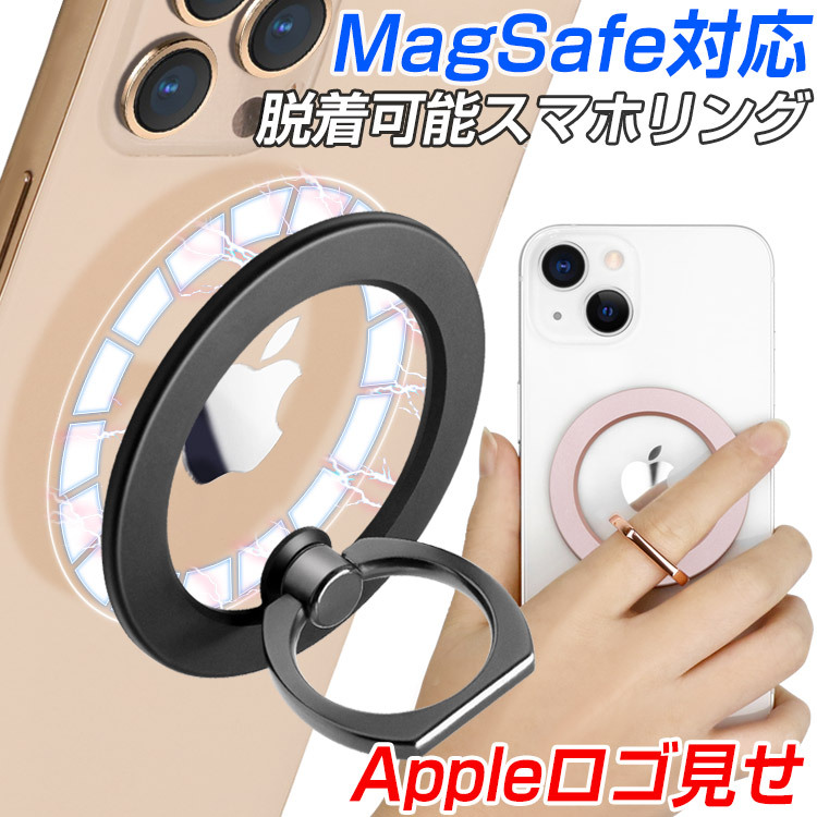 特徴 | 妥協のない理想的なホールドリング。 シンプルな中にひと工夫されたデザインがiPhoneのロゴマークを際立たせます。 各種ワイヤレス充電器の邪魔にならない便利なサポートリングが新登場です。 「MagSafe対応のアクセサリもMagSafe充電器も使いたい!」 こんな悩みはありませんか? iPhone本体やMagSafe対応ケースに直接貼り付けて使用し、MagSafe充電を行いたい時は簡単に外すことができます。 ※吸着力はMagSafe搭載ケースの使用でより強くなります。 本製品のリングは中央より外側に配置されているため、利き腕や手の大きさに関わらず使えるようになっております。 水平方向に180°回転で安全に指をはめて使い、スマホスタンド代わりにもお使いいただけます。 360°回転リングは必要な角度でリングを止めることができ、スマートフォンを便利に扱うことが可能です。 様々な角度でスマートフォンを支える事ができます。 現在販売されている従来品より、約半分の薄さを実現。スマートフォンに取り付けた際のスリムな見ためやグリップ感の違いは一目瞭然です。 直径56mmのコンパクトなサイズでお手元にもiPhoneにも違和感なくなじみます。 重量わずか19g。通常のリングよりスリムなプレートでコンパクトな直径。だからこそ超軽量を実現しました。 約800gの重さを耐えられる強力な磁力だからこそ、外部の衝撃で簡単に外れることはありません。 MagSafe対応機種の本体に直接、もしくはMagSafe搭載ケースの使用で本製品を使用できます。 マグネットが搭載されていないケースには使用できません。 ケースをお使いの際は対応機種であってもMagSafe搭載ケースが必要です。 | |