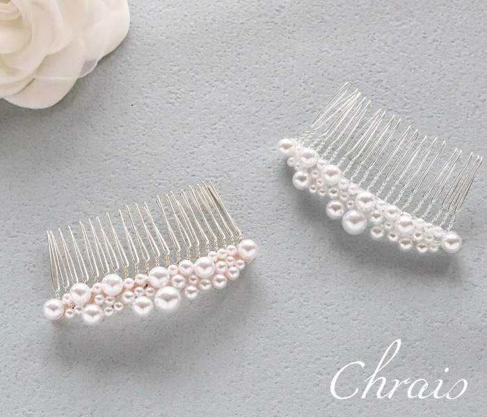 大小のパールが存在感あり、結婚式やパーティーなどのお呼ばれにも華やかなシーンにピッタリなパールコーム