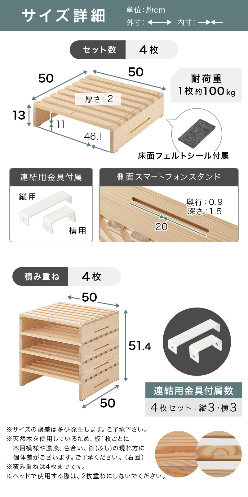 追加用 すのこ 4枚 ベッド ベッドフレーム 木製ベッドフレーム ローベッド 組み立て 簡単 低い 天然木 シンプル 軽量 分割 連結 セット おしゃれ