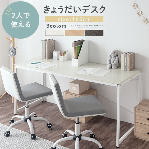 学習机 勉強机 ツインデスク おしゃれ キッズデスク シンプル 兄弟 ワイド 木製 幅160 高さ70 奥行60 2人用 二人並び リビング 子供部屋