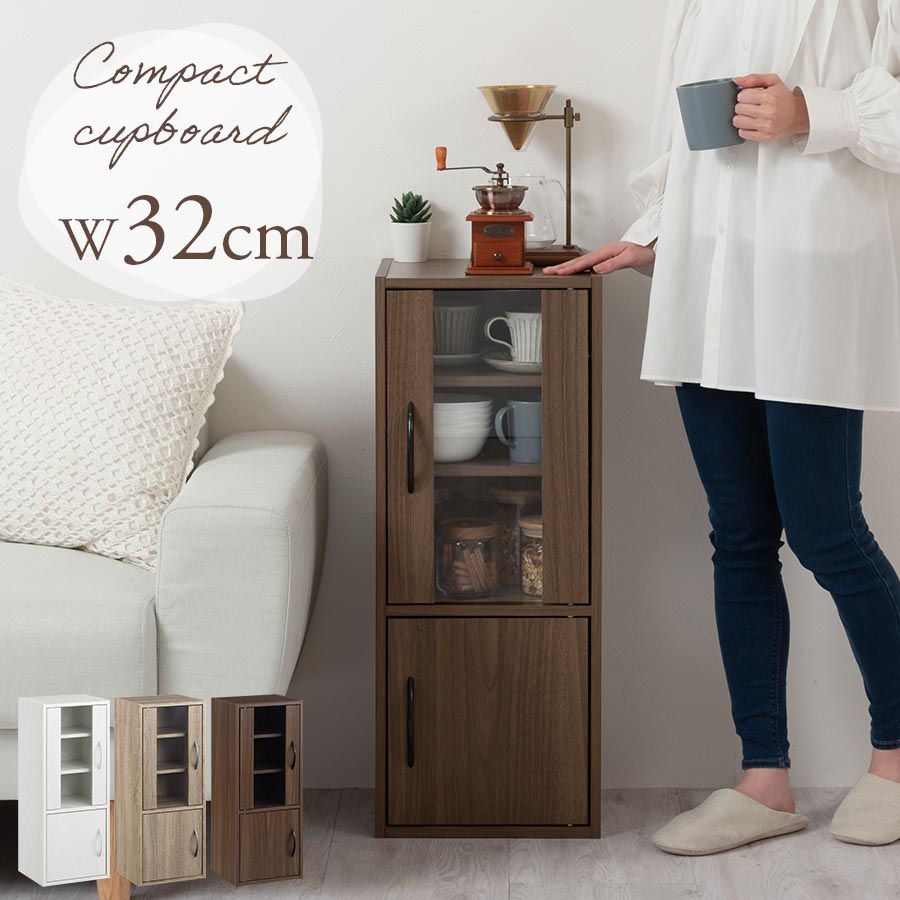 【完成品】 キッチン収納 キッチンラック カップボード ひとり暮らし おしゃれ 1人用 2人用 小型食器棚 隙間 キッチンカウンター下 ガラス 扉付き 幅30 細い