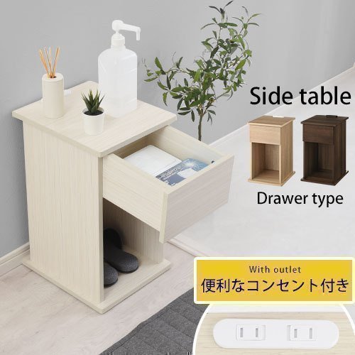 飾り棚 おしゃれ 引き出し付き ミニテーブル 木製 サイドテーブル コンセント ナイトテーブル 引き出し デスク収納 サイドラック ベッドサイドテーブル