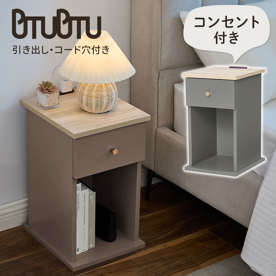 ナイトテーブル 引き出し 充電 サイドテーブル コンセント付き 2口 コード穴 リビング収納 ソファテーブル コンパクト ミニテーブル おしゃれ