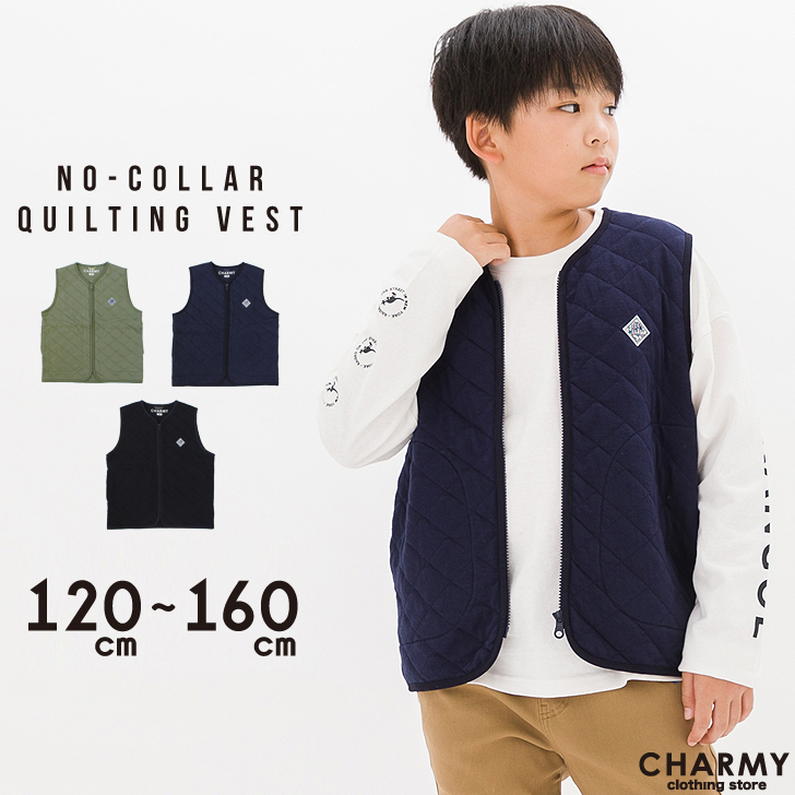 【SALE】ジュニア キッズ ノーカラーキルティングベスト 子供服 男の子 女の子 アウター 羽織り 襟無し 小学生 高学年 中学生